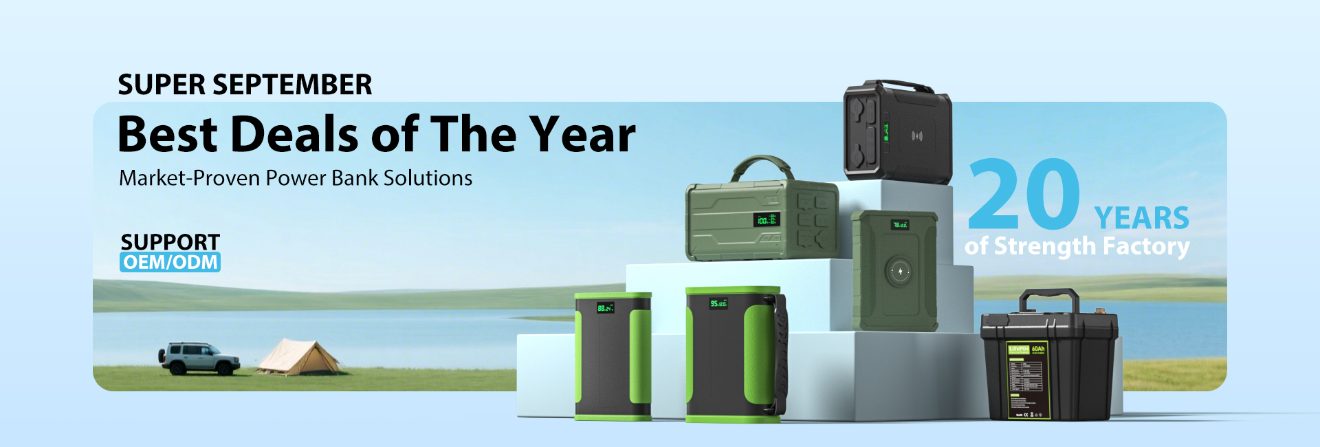 У нас 20-летний опыт работы в отрасли, и мы специализируемся на индивидуальных OEM/ODM-услугах, охватывающих мобильные источники питания CPAP, батареи LIFEPO4, уличные электростанции и другие области.